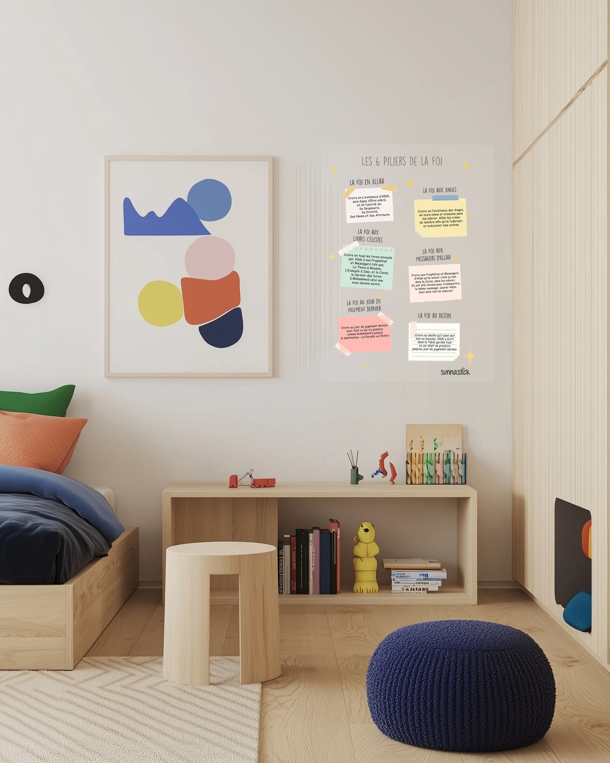 Découvrez les fondements essentiels de l’Islam avec notre affiche des 6 Piliers de la Foi. Conçu pour aider petits et grands à apprendre et à mémoriser les fondements essentiels de l’Islam, il vous accompagne dans un cheminement spirituel.