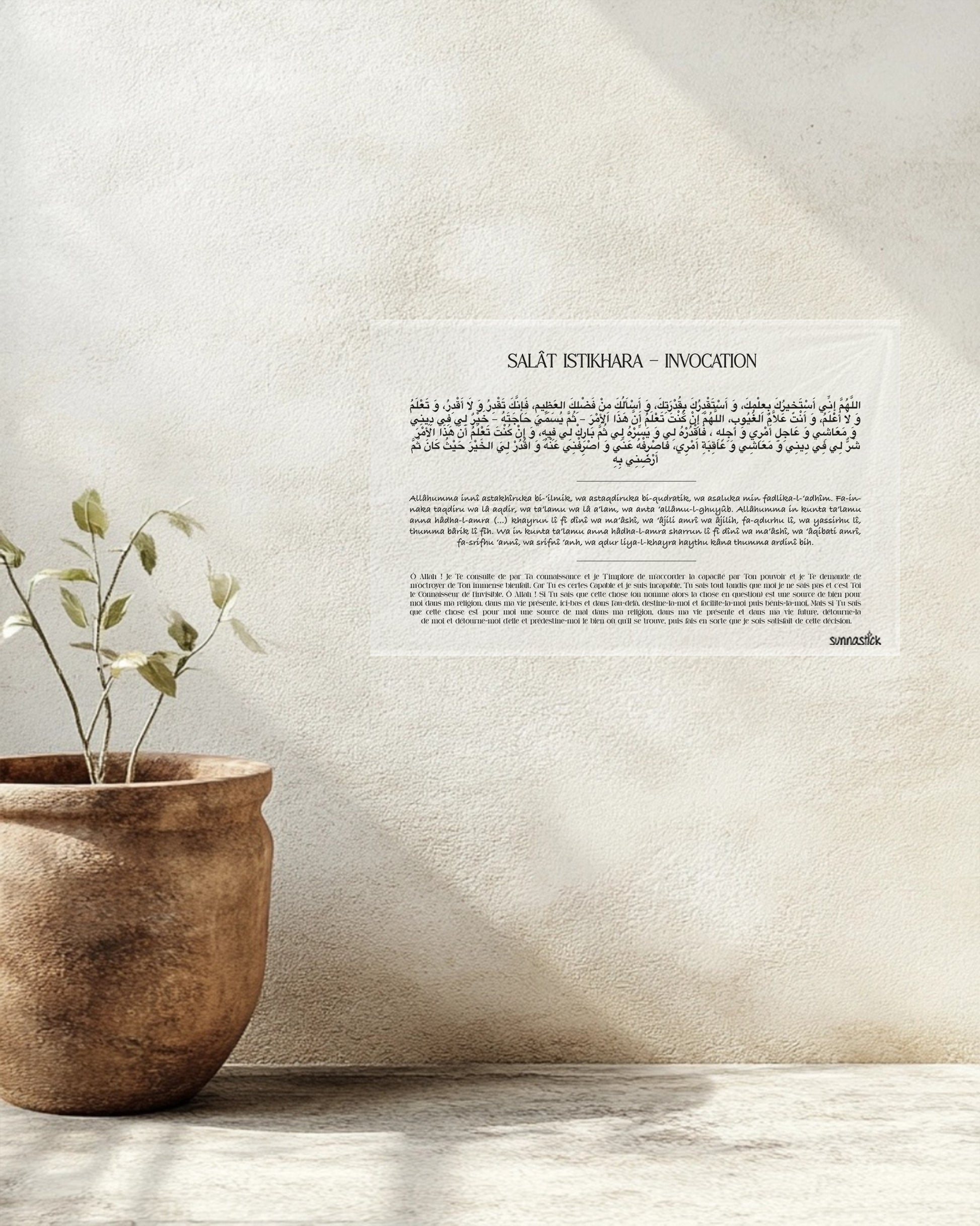 Ce sticker a été conçue pour vous aider à intégrer la prière d’Istikhara dans votre quotidien lorsque vous êtes face à un choix important. La Salat al-Istikhara est une magnifique manifestation de la confiance en Allah et de la recherche de Sa guidance dans nos décisions.
